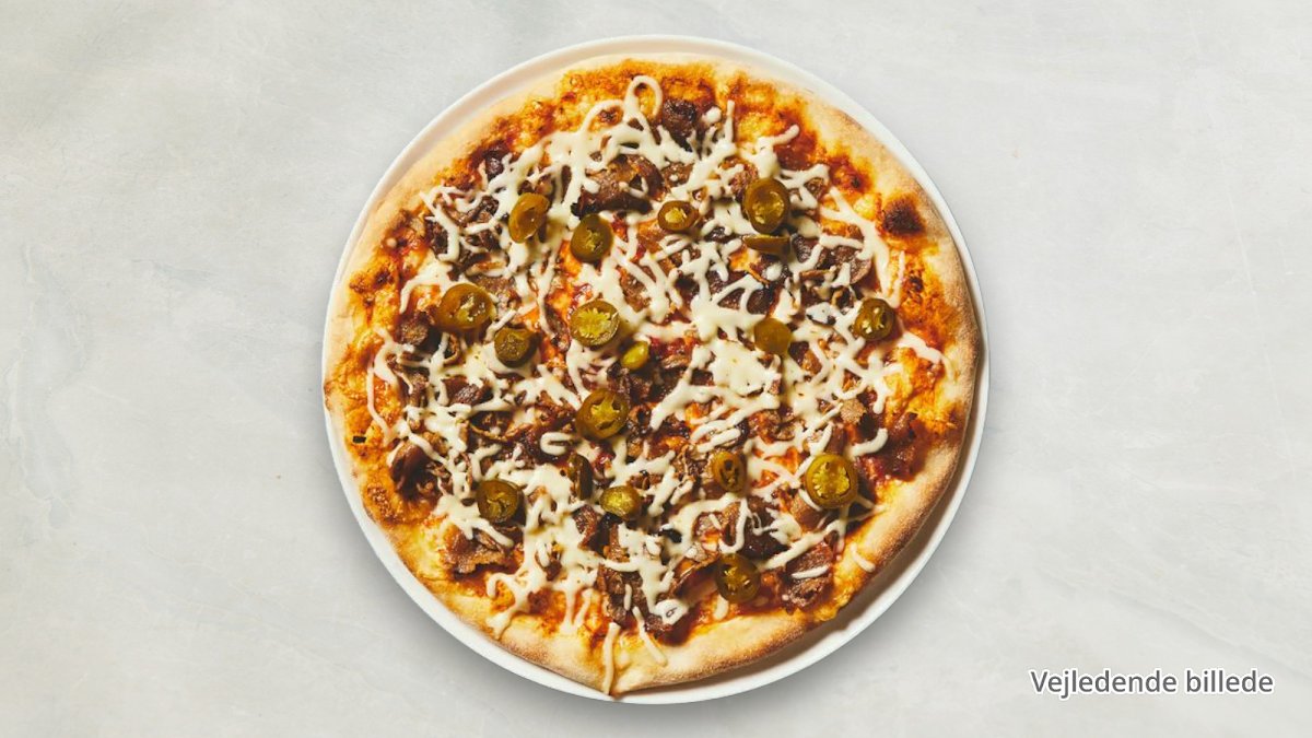 Tomatsauce, ost, hakket oksekød, pepperoni, chili og hvidløg.