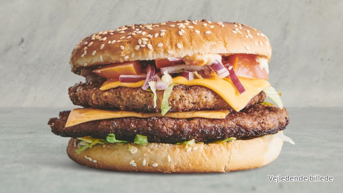 To burgere med to bøffer af 400 gram med burgerdressing, dobbelt ost, salat, tomat og agurk. Serveres med pommes frites, ketchup og remoulade.