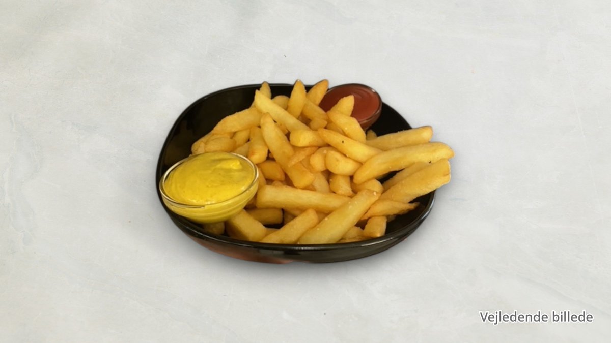 5 stk. sprøde nuggets. Serveres med en lille salat, pommes frites og ketchup dip