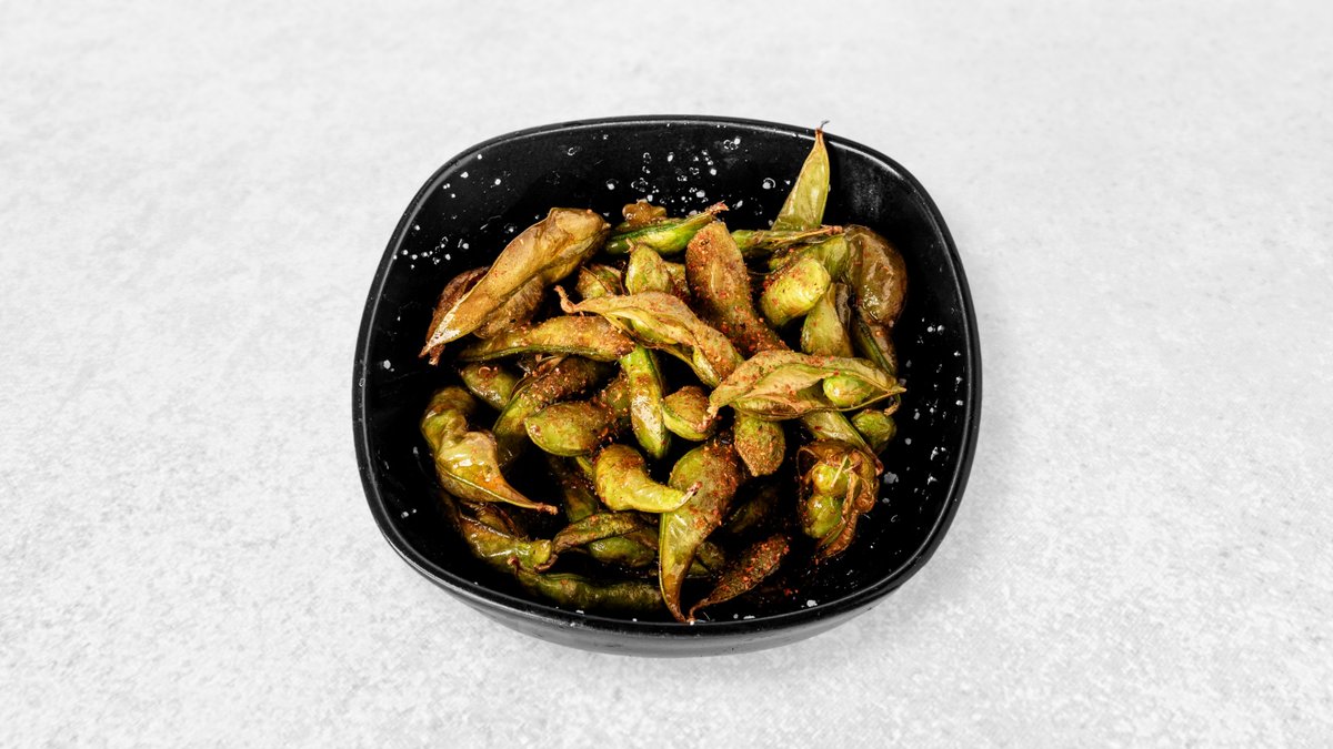 Dybstegte sojabønner med havsalt, shichimi togarashi og spicy sesamolie.