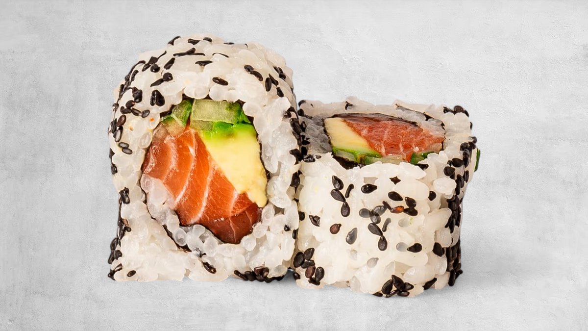 Surimi, avocado og agurk. Rullet i sort sesam.