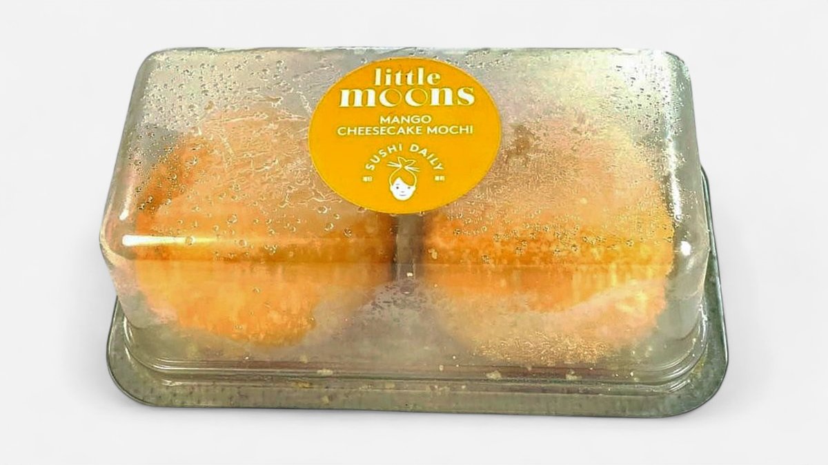 Uramaki fyldt med krabbe, avocado og agurk. Toppet med frisk laks, teriyakisauce, chilimayo, masago og kasse.