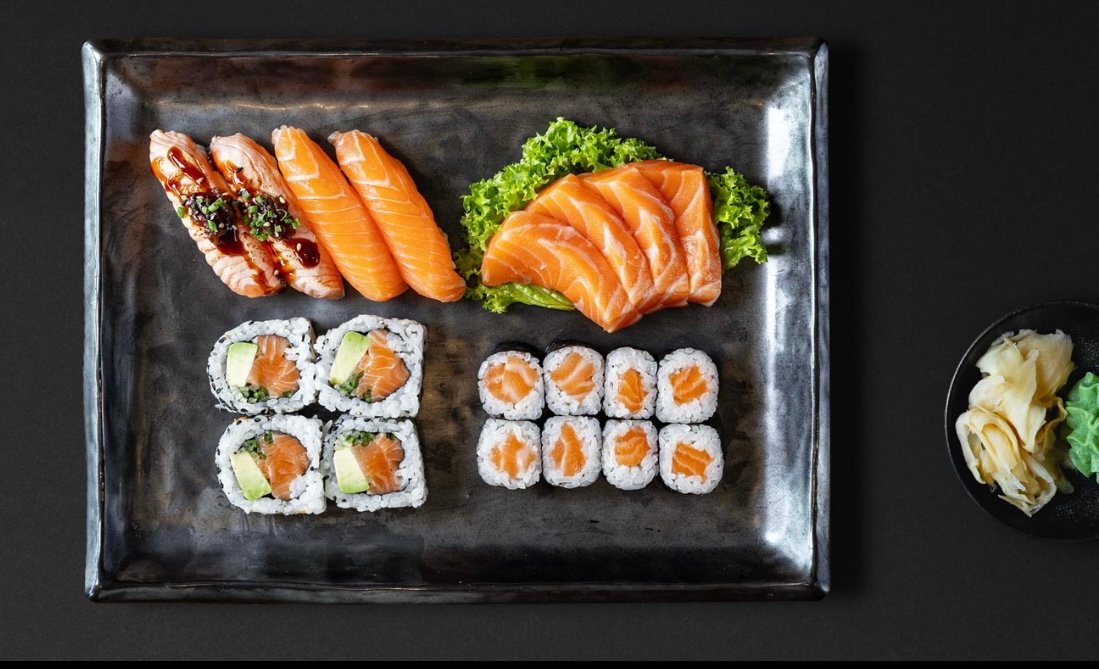 Nigiri: 2 x Laks 2 x Laks Flamberet Maki: 8 x Laks Sashimi: 4 x Laks Uramaki: 4 x California Laks
