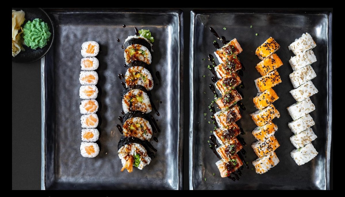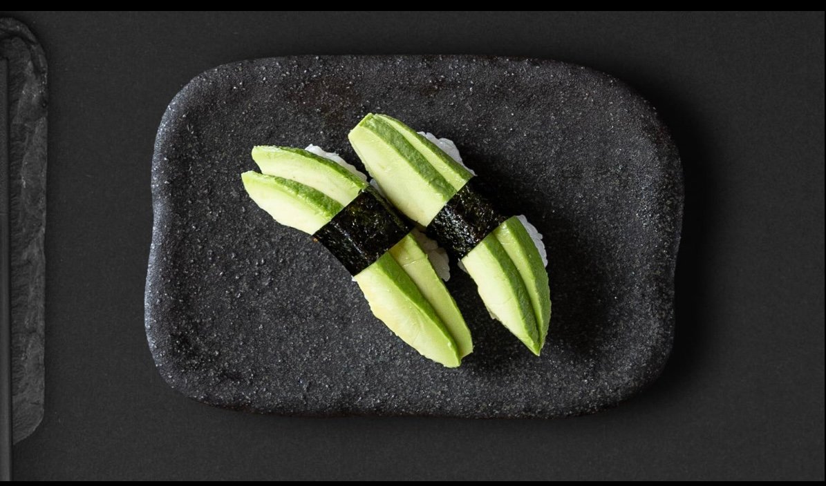 4 Maki agurk, 4 Maki Avocado, 2 Nigiri Avocado, 2 Nigiri Tofu, 4 Crispy Veggie, 4 Sashimi Tofu.