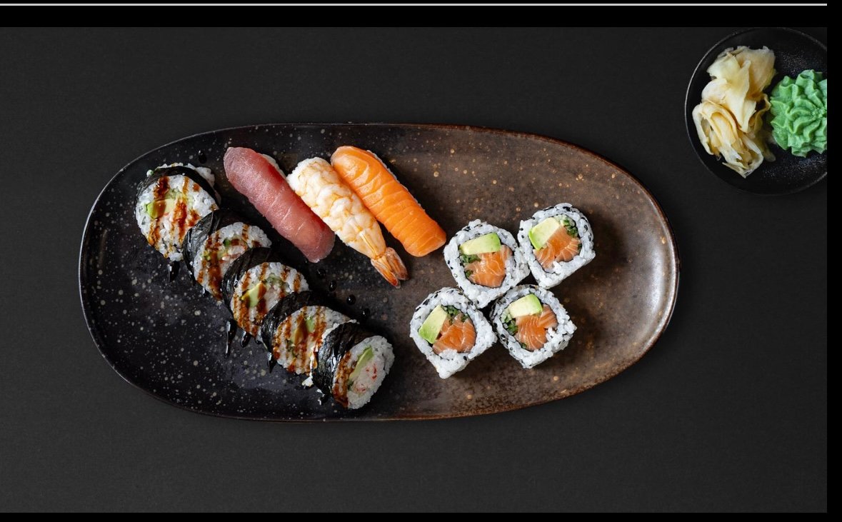 4 stk Salmon maki. 2 stk Taru-taru. 2 stk Kai spicy tuna. 2 stk Nigiri salmon. 2 stk Nigiri tuna. 5 stk Futomaki fried shrimp. 4 stk Avocado tempura.