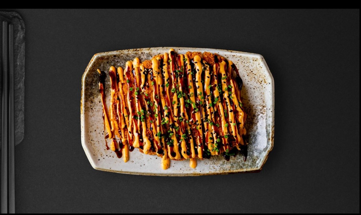 Fyldt med paneret kylling og avocado, toppet med shichimi, kasse, spicymayo og teriyaki sauce.