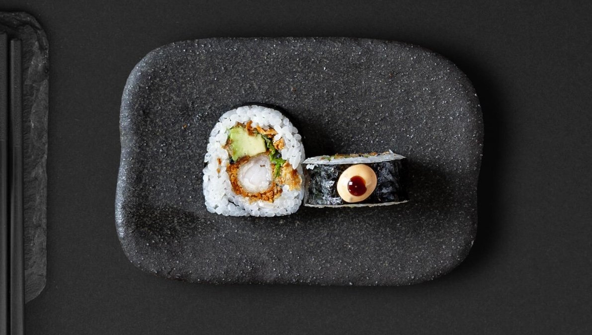 Tempurarejer, avocado, agurk, teriyakisauce og chilimayo.