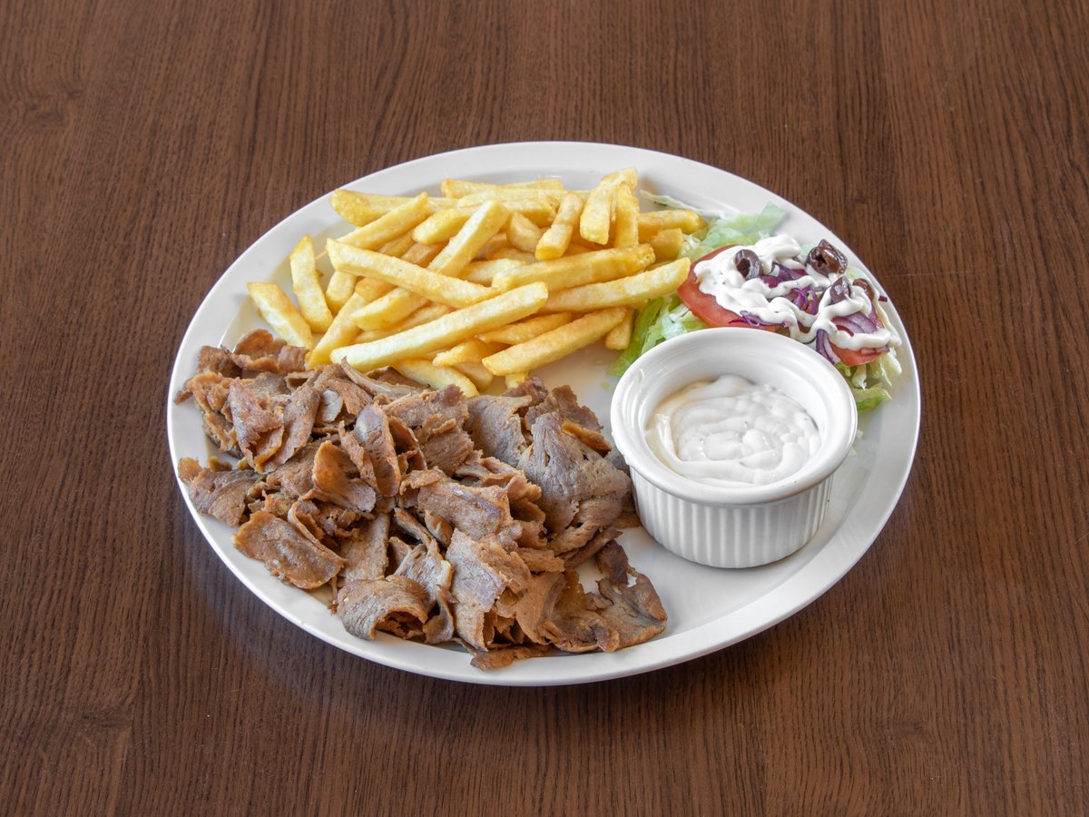 Hjemmelavet pitabrød med valgfri protein, salat, valgfri dressing, pommes frittes og dyppelse. Serveres med en valgfri drikkevare.