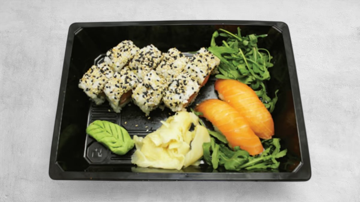 (Anbefales til 2 personer) Nigiri: 2 x Laks 2 x Flammegrillet laks Uramaki: 8 x Crispy ebi 8 x Spicy laks Kaburimaki: 8 x Rainbow 8 x Tempura deluxe
