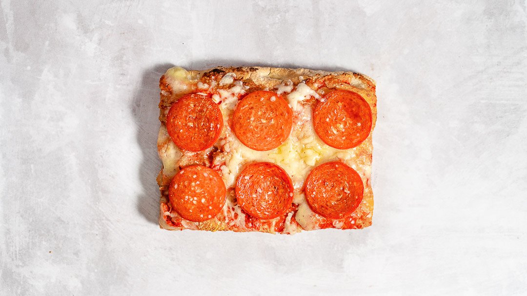 Pizza med ost, tomatsauce og halal pepperoni (kylling & oksekød).