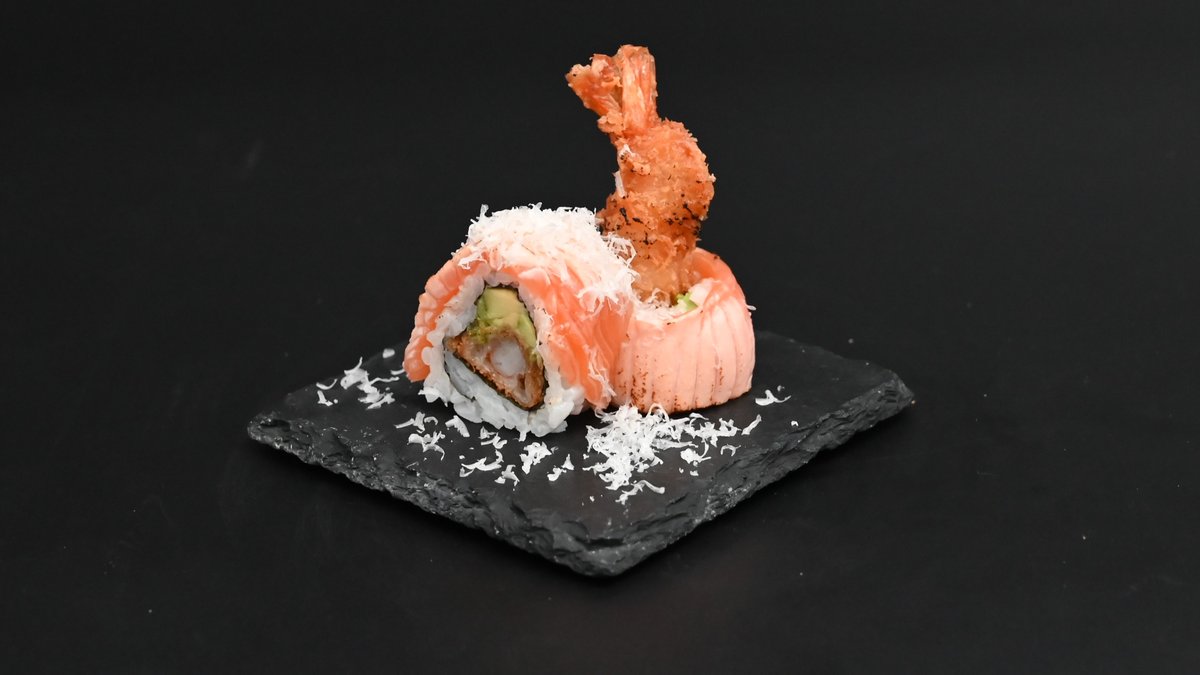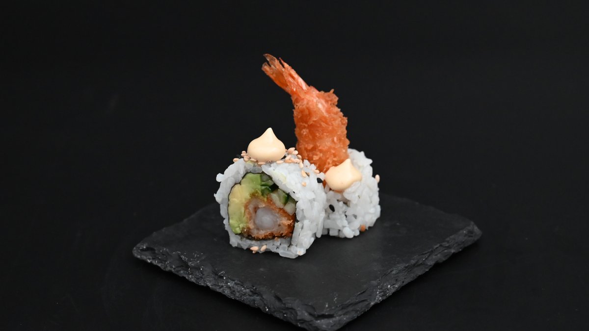 Tempurareje, chilimayo, avocado og agurk. Rullet i sesam og teriyakisauce.