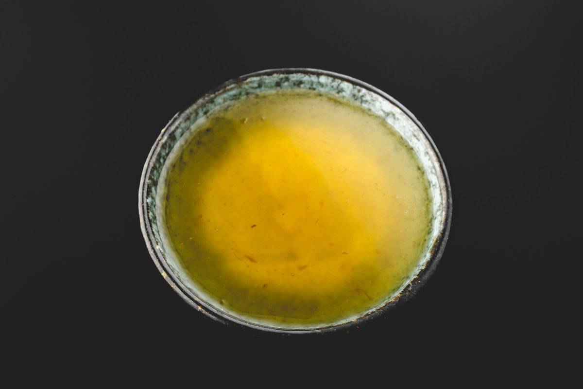 Lavet på citrongræs, galanga og limeblade med champignon, tomater, spidskål og koriander. Serveres med Jasminris.