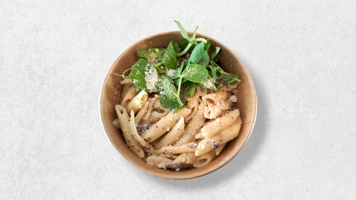 Pasta med champignon og trøffel vendt i parmesan & flødesauce.