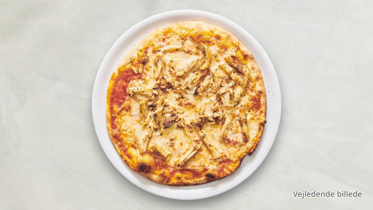 Tomatsauce, ost, kebab, kylling, rødløg, champignon og frisk peberfrugt.