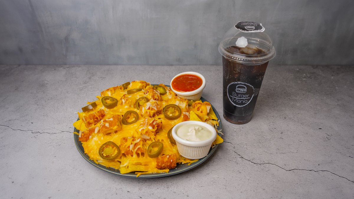 Crispy chicken stykker, cheddar og revet ost og grillet jalapenos. Serveres med avocado creme og salsa.