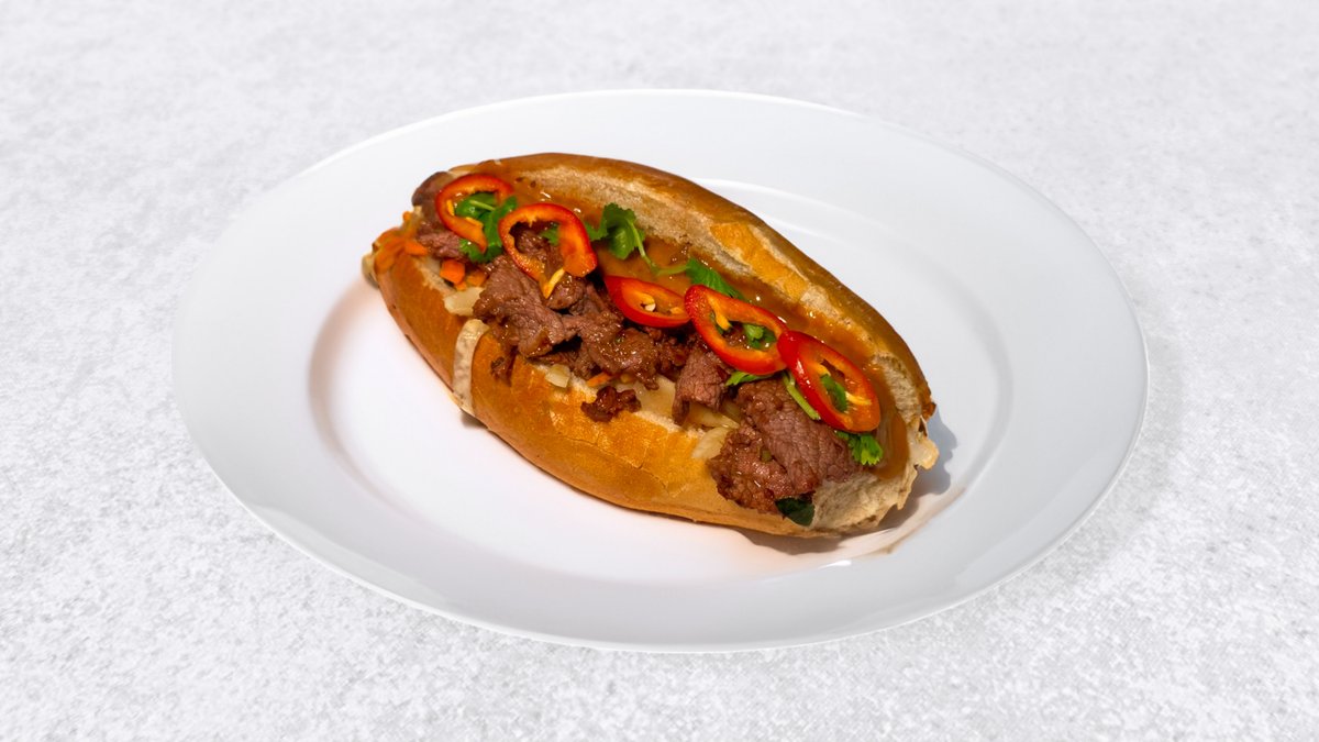 Vietnamesisk sandwich med fyld af valgfri protein, syltede gulerødder, daikon, chili, urter og hjemmelavet sauce.