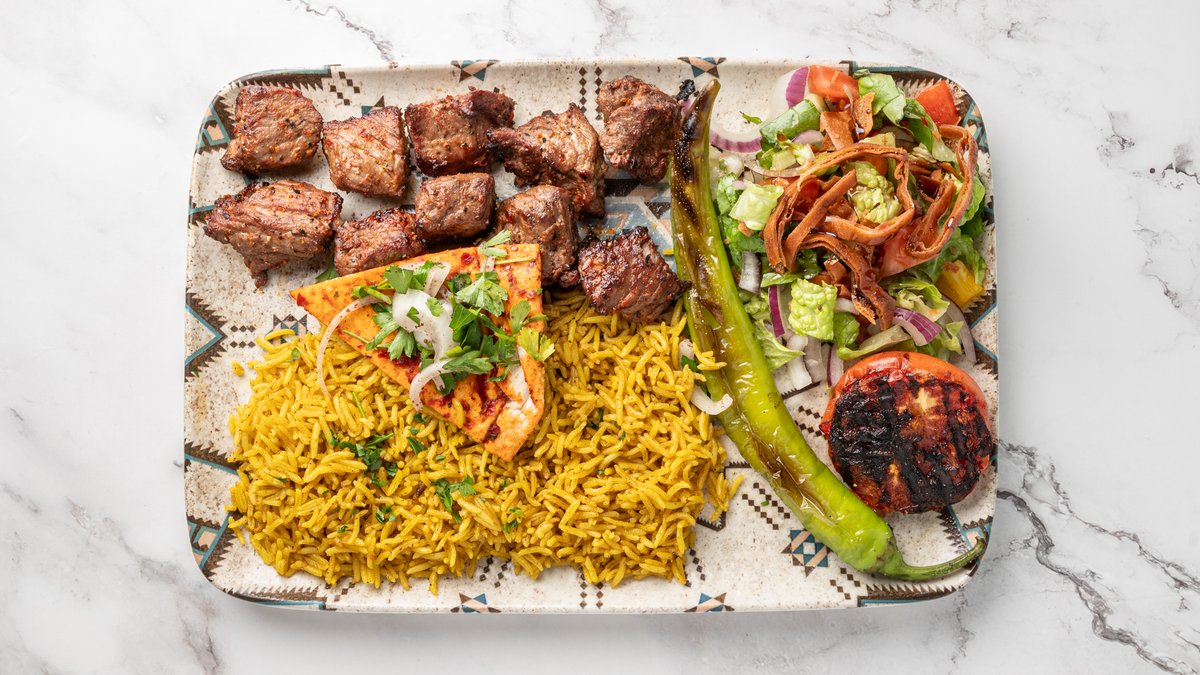 1x Adanaspyd 1x Kaftaspyd 1x Kalvespyd 1x Lammespyd 2x Lammekoteletter Vendt i peber og tomat, serveres med valgfrit tilbehør. (Anbefalet til 2 personer)