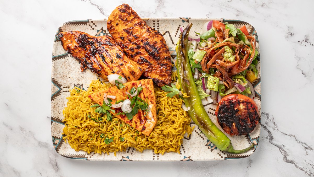 1x Adanaspyd 1x Kyllingspyd 1x Lammespyd Vendt i peber og tomat, serveres med valgfrit tilbehør.