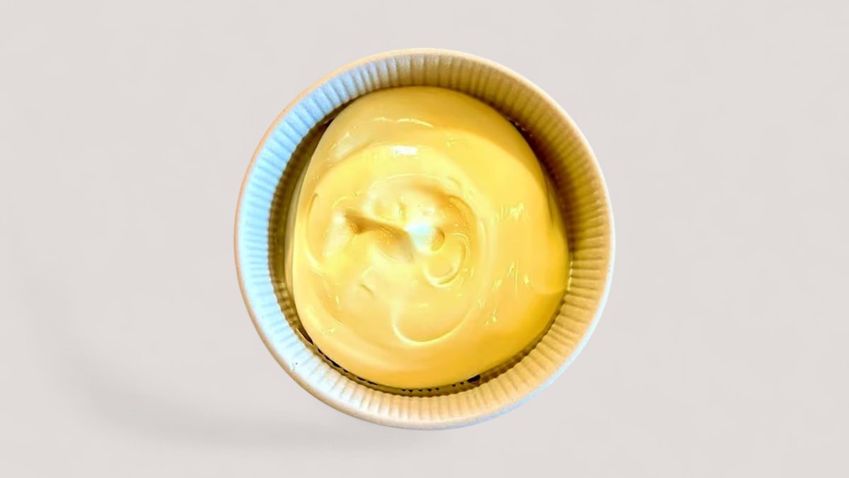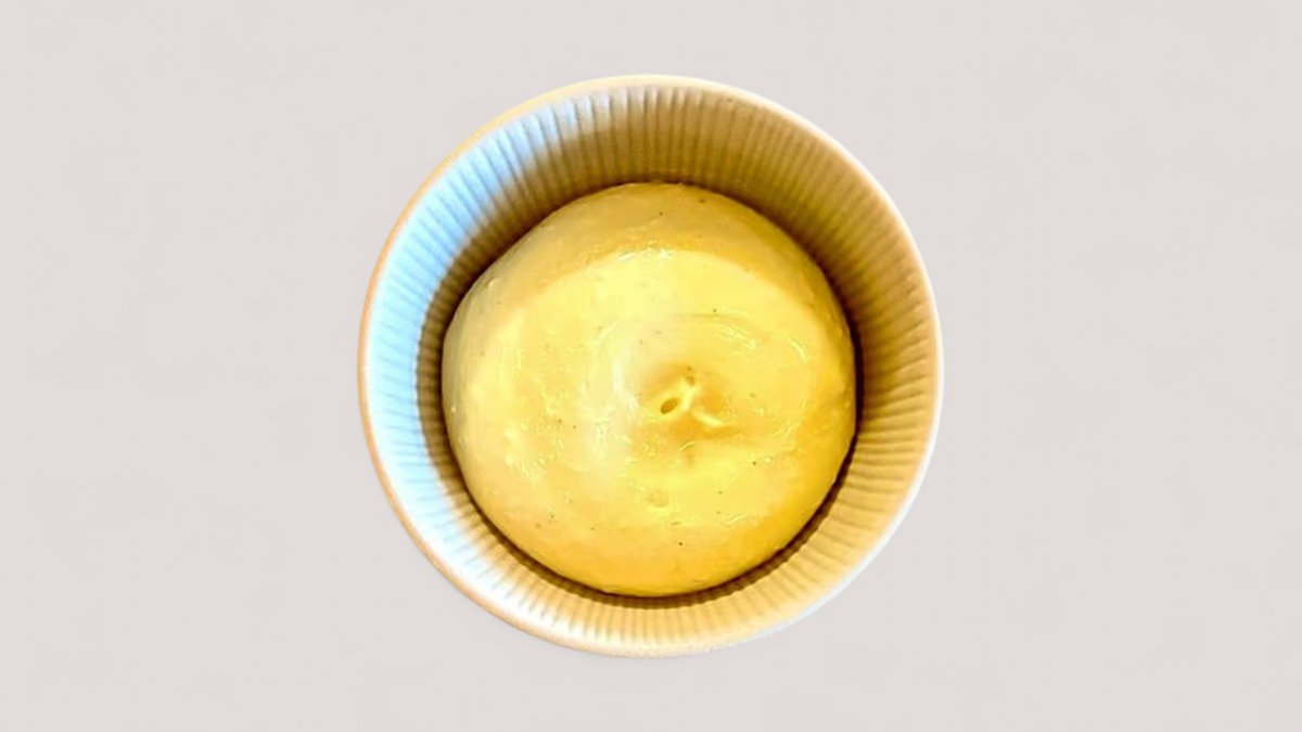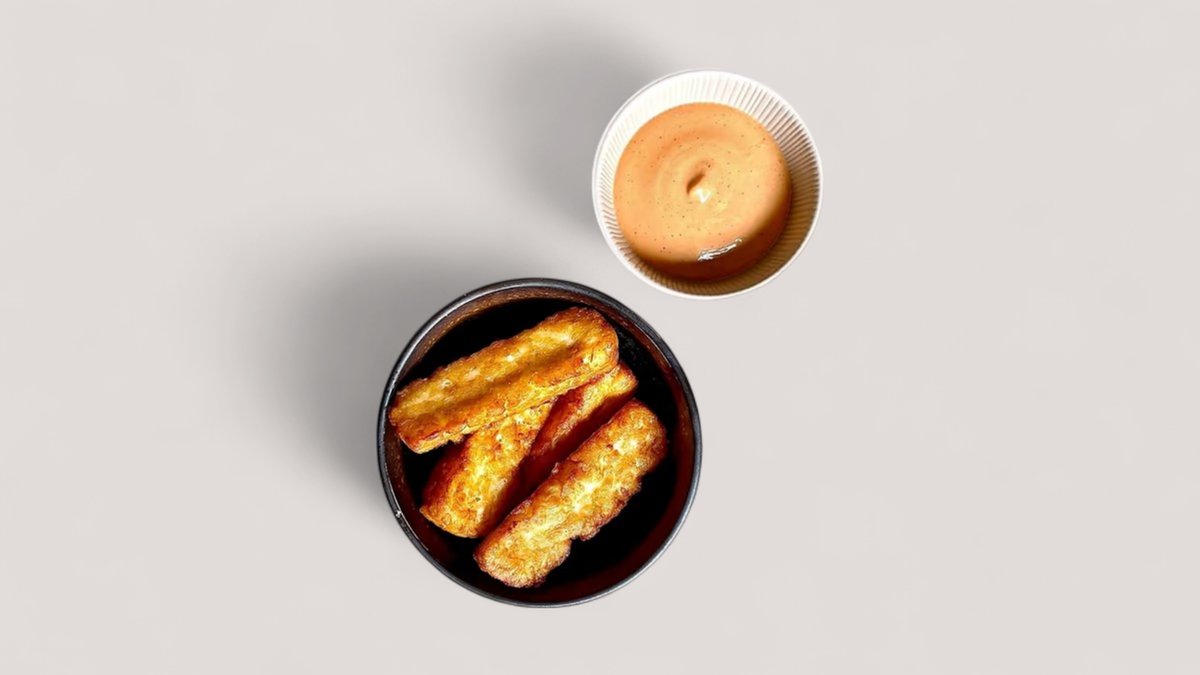 lavet af risotto med basilikum, mozzarella og hertil kommer der en parmesanmayo