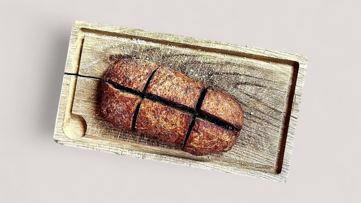 Pakke med italienske nocellara oliven, saltede og røgede mandler, og et surdejsbrød