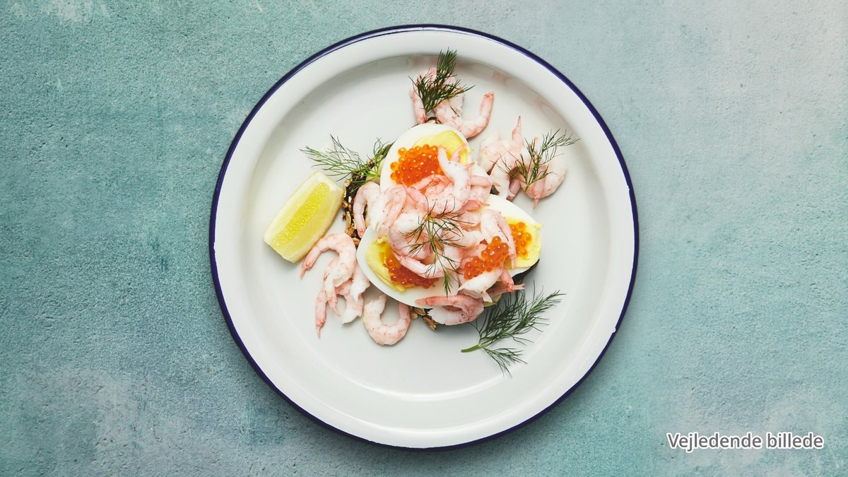 Klassisk smørrebrød med fiskefilet og rejer