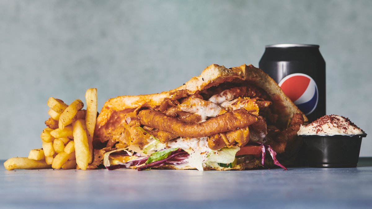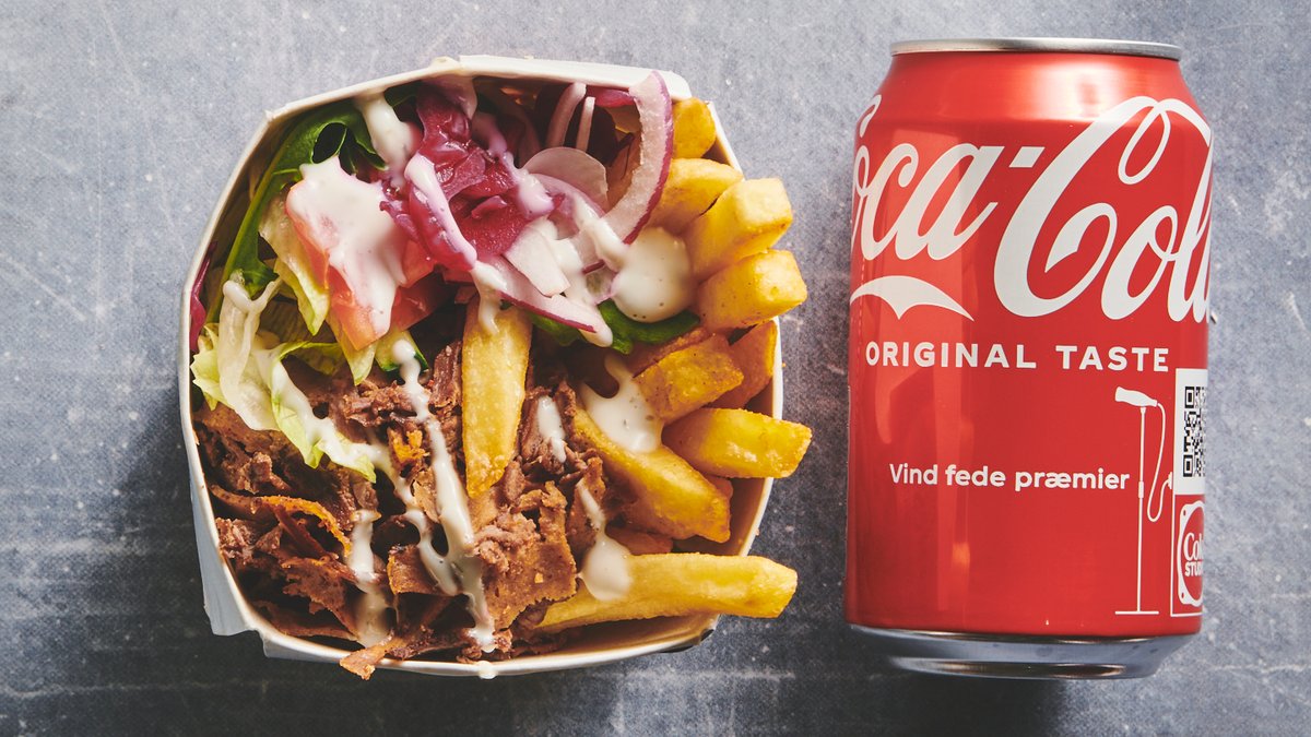 Grillet kalvekød, döner sauce, syltet hvidkål eller rødkål, mix af tomat og agurk, iceberg og rødløg. Serveres med en valgfri drikkevare, pommes frites og dyppelse Ketchup el. Remoulade