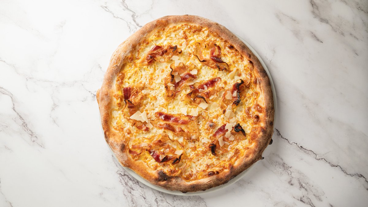 Mozzarella fior di latte, pasteuriseret æg, guanciale (lufttørret svinekæbe), pecorino og friskkværnet peber.