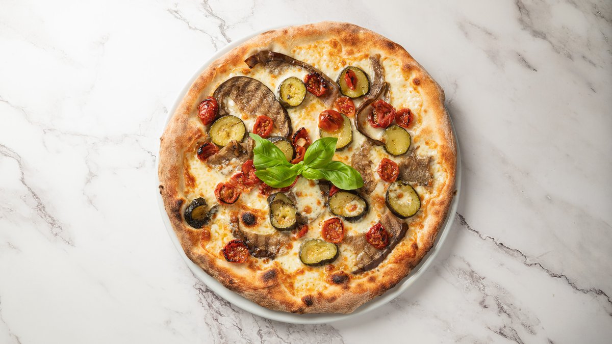 Bøffel mozzarella, grillet aubergine, squash, semi-dried tomater og hjemmelavet persille pesto.
