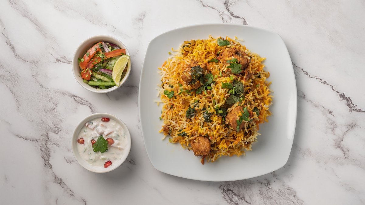En traditionel risret tilberedt med duftende basmatiris, marineret kylling og aromatiske krydderier. Serveres med salat og raita.