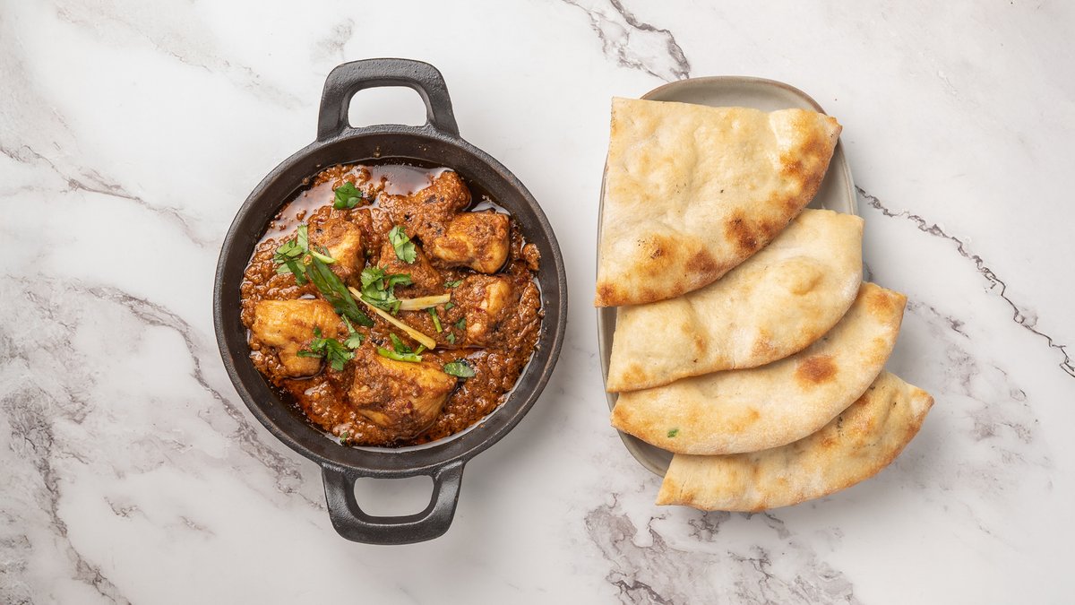 Møre stykker oksekød eller kylling i en kraftig, syrlig og krydret sauce med chili, hvidløg og eddike. Serveres med ris eller naan.