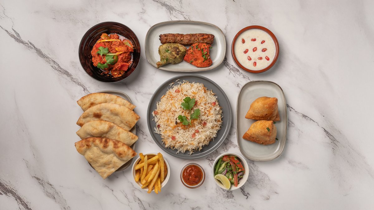 En valgfri karryret, tilbehør og dessert serveret med 2x kylling og 1x oksekebab, salat og dyppelse. Anbefales til 1 person.