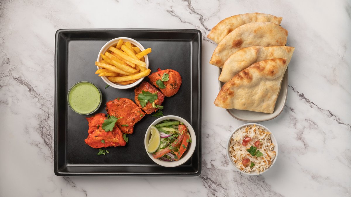 Indisk grillet mør og saftig kylling marineret med yoghurt og aromatiske krydderier. Serveres med 4 stk. kylling, pommes frites, valgfrit tilbehør og dyppelse.