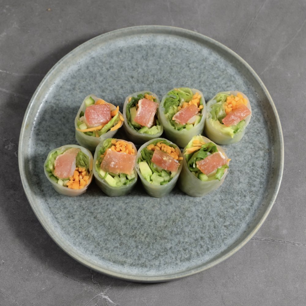 2 x Forårsruller Tilbehør: 1 x Rejesticks 1 x Kyllingesticks 1 x Ris Serveres med én valgfri Hata Ramune sodavand.