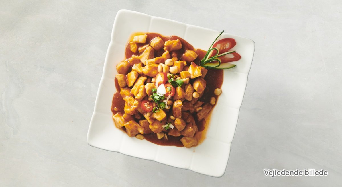Svinekød ed. stærk sauce, grøntsager og peanuts.