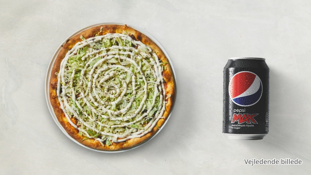 Almindelig pizza og valgfri 0,33 l sodavand.