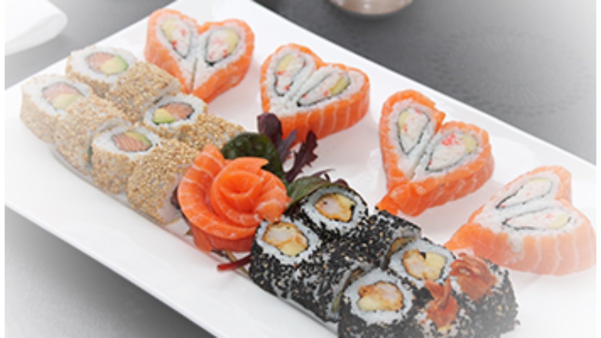 Uramaki: 8 x spicy laks 8 x tempura-reje Kaburimaki: 8 x Love Roll Sashimi: 4 x laks