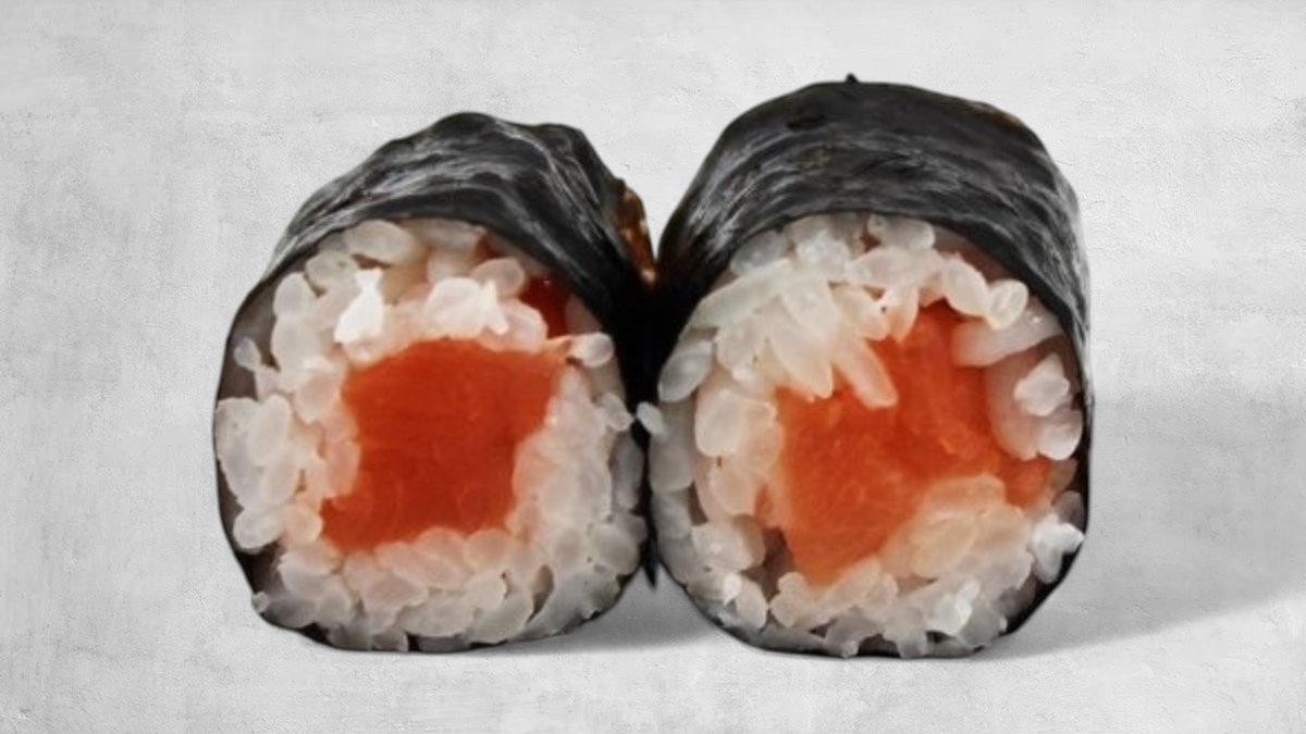 Makirulle omgivet af rispapir, delt i 6 stk.