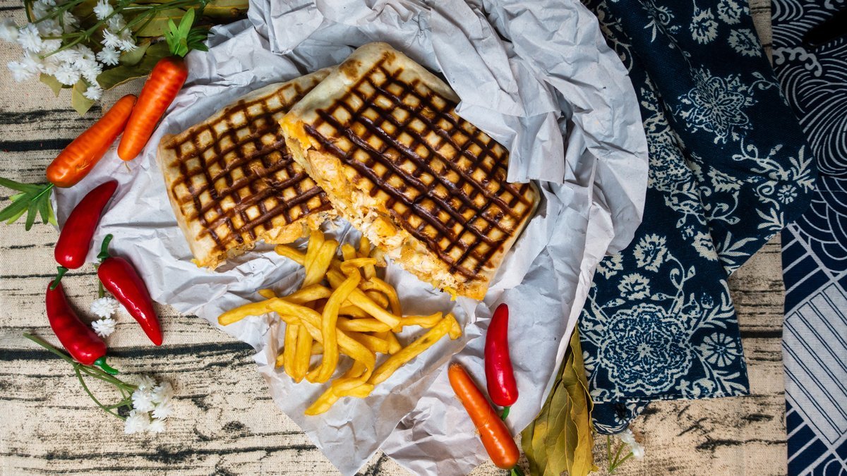 Delicious burgers and tortillas, smoothies, salads and other meals