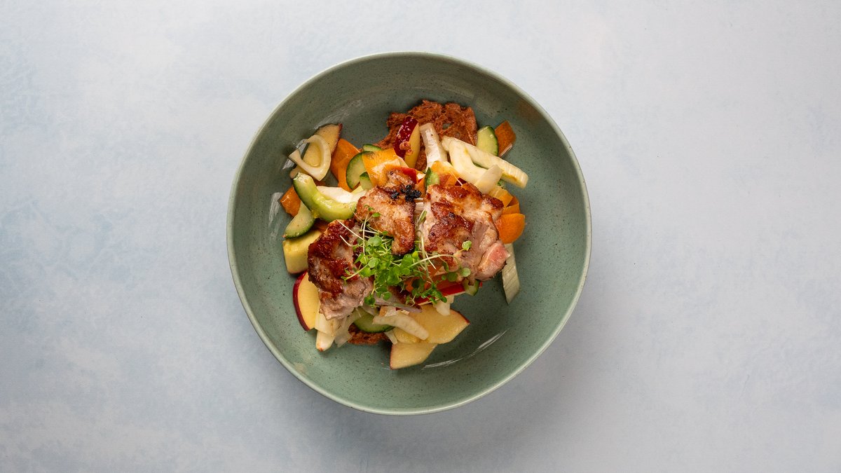 Tomat, mozzarella, chorizo, serrano sink, oliivid
