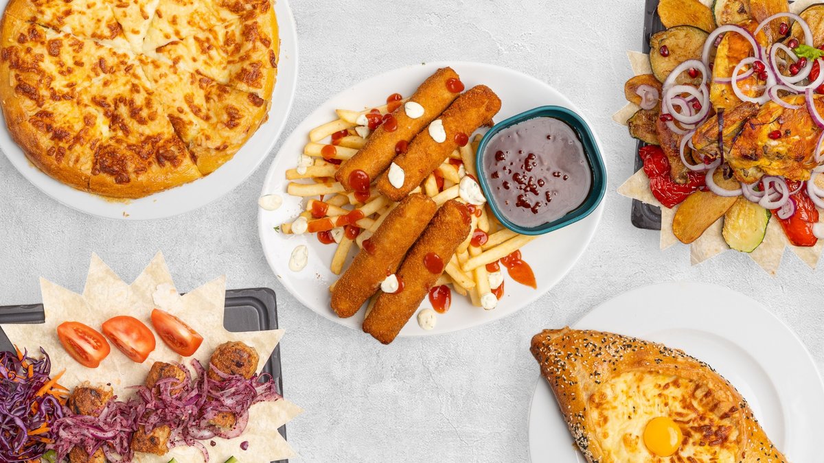Delicious burgers and tortillas, smoothies, salads and other meals