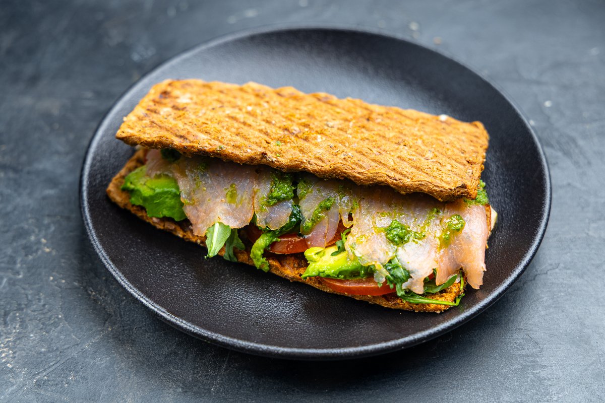 Lõhe, tomat, avokaado, pesto, rukola 475,90 kcal, leib/ciabatta