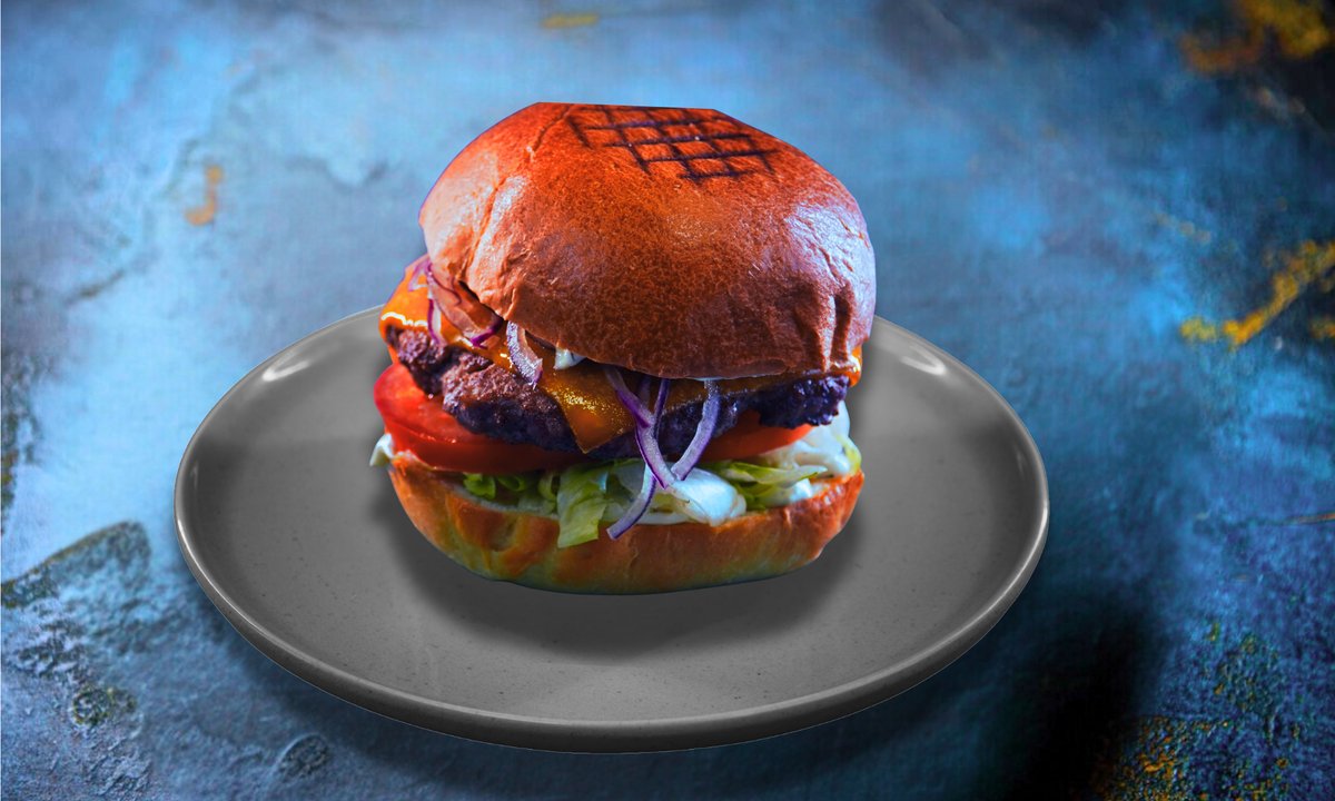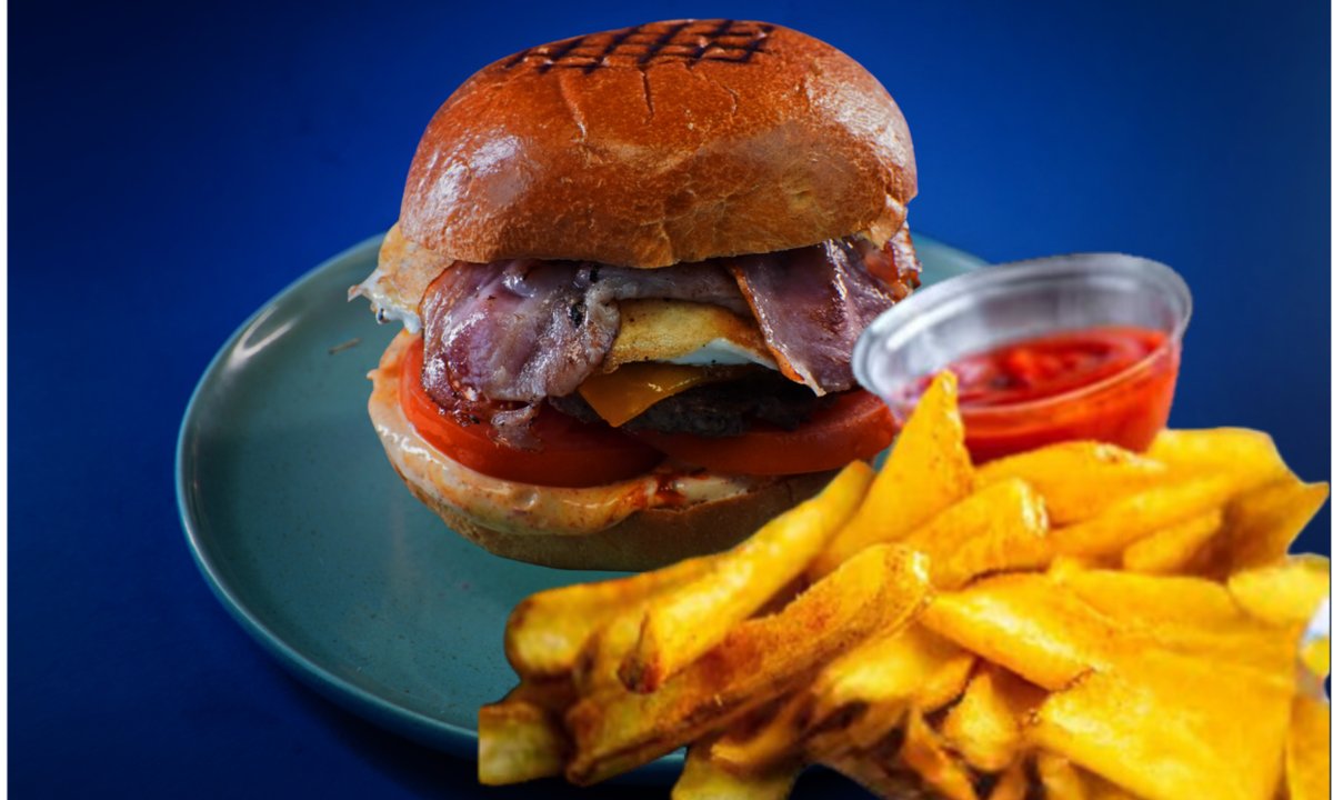Sai, BBQ-kaste, peekon, krõbesibul, veiselihapihv, cheddar, jääsalat