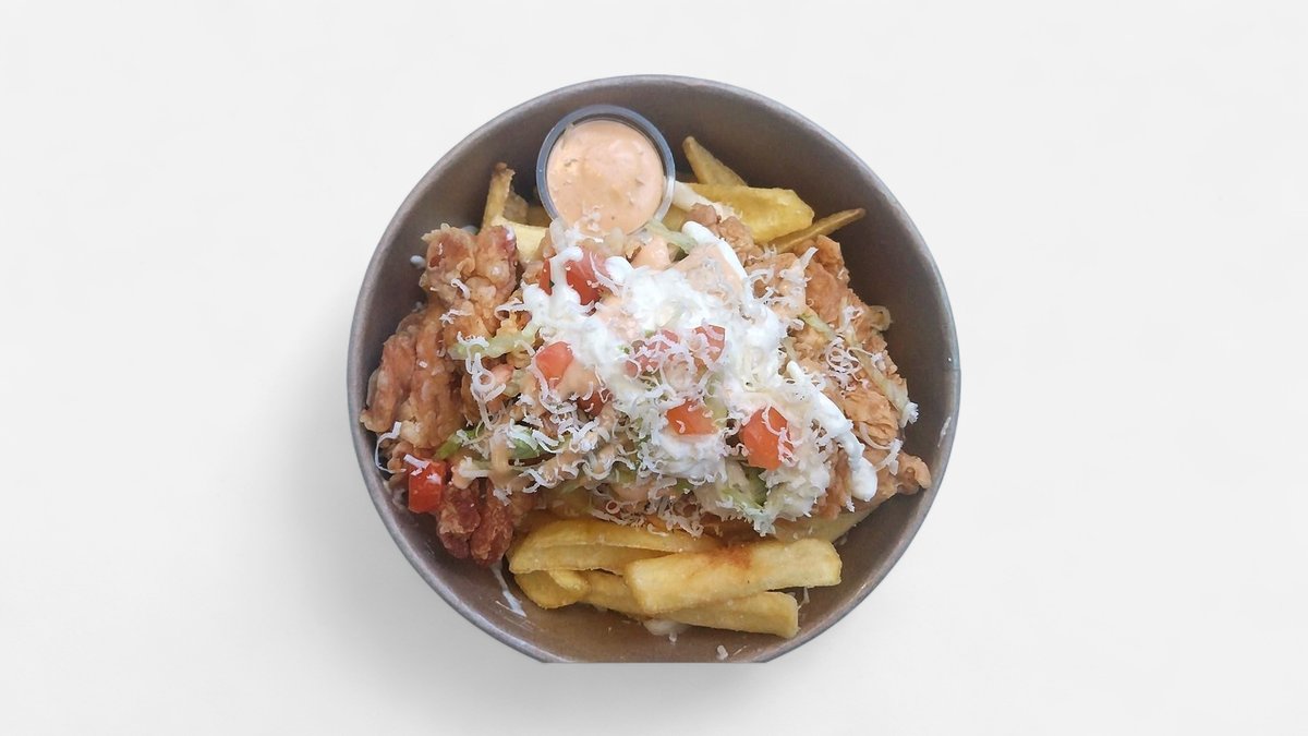 Kõik tellimused sisaldavad friikartuleid ja teie valitud dipikastet: küüslaugukaste- või Thousand Island kaste.