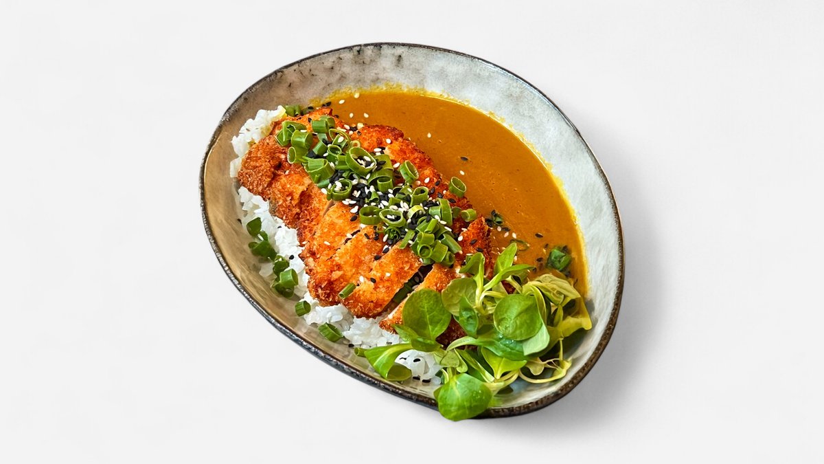 Pankoga paneeritud kanafilee riisiga ja tonkatsu kastmega