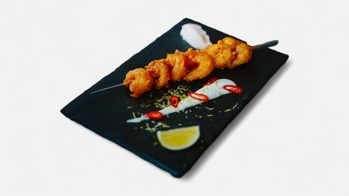 Paneeritud hiidkrevetid 6tk, laimimajonees, juustukaste