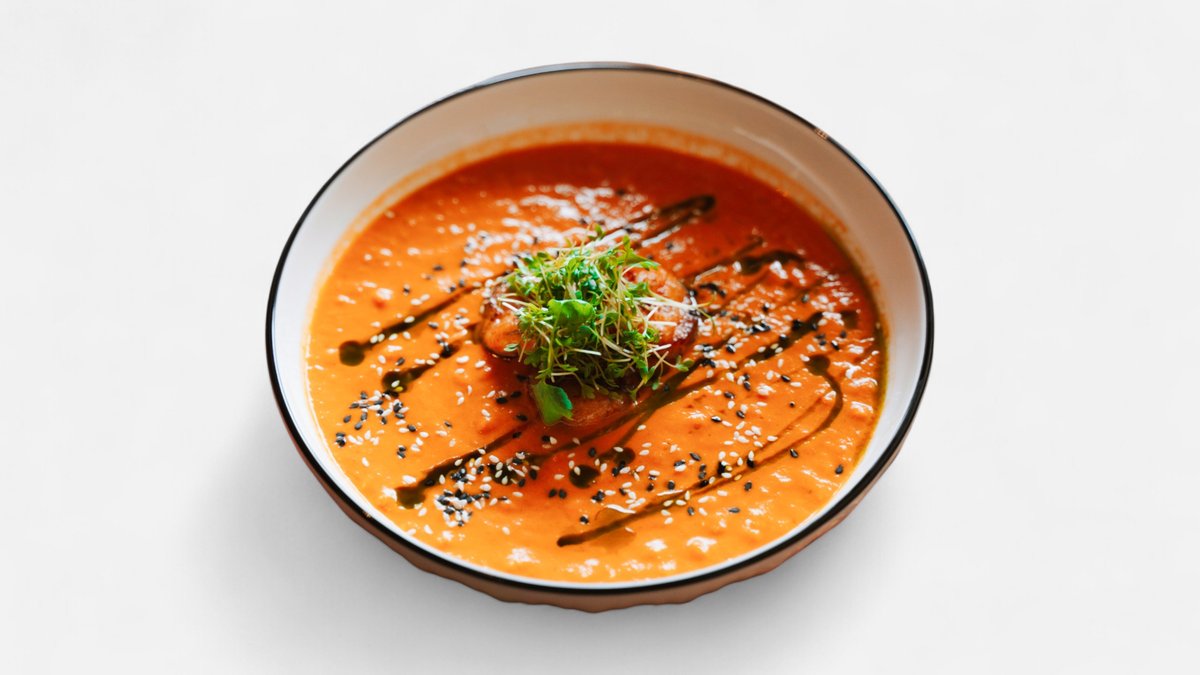 Peruu päritolu vürtsikas supp. riis, krevetid, Panca pasta, seesamiseemned