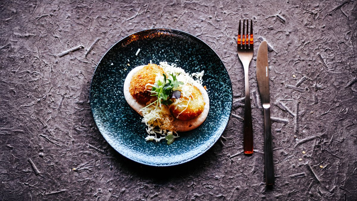 Pardi arancini, sibulamoos, seedermänniseemned, trühvli aioli, trühvli juust