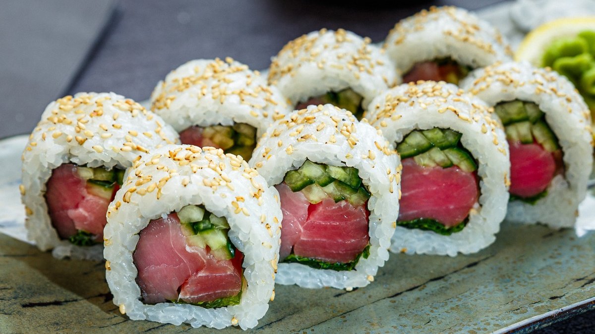 Toorjuust, tuunikala,avokaado, lumekrabi, majonees, unagi kaste, seesam