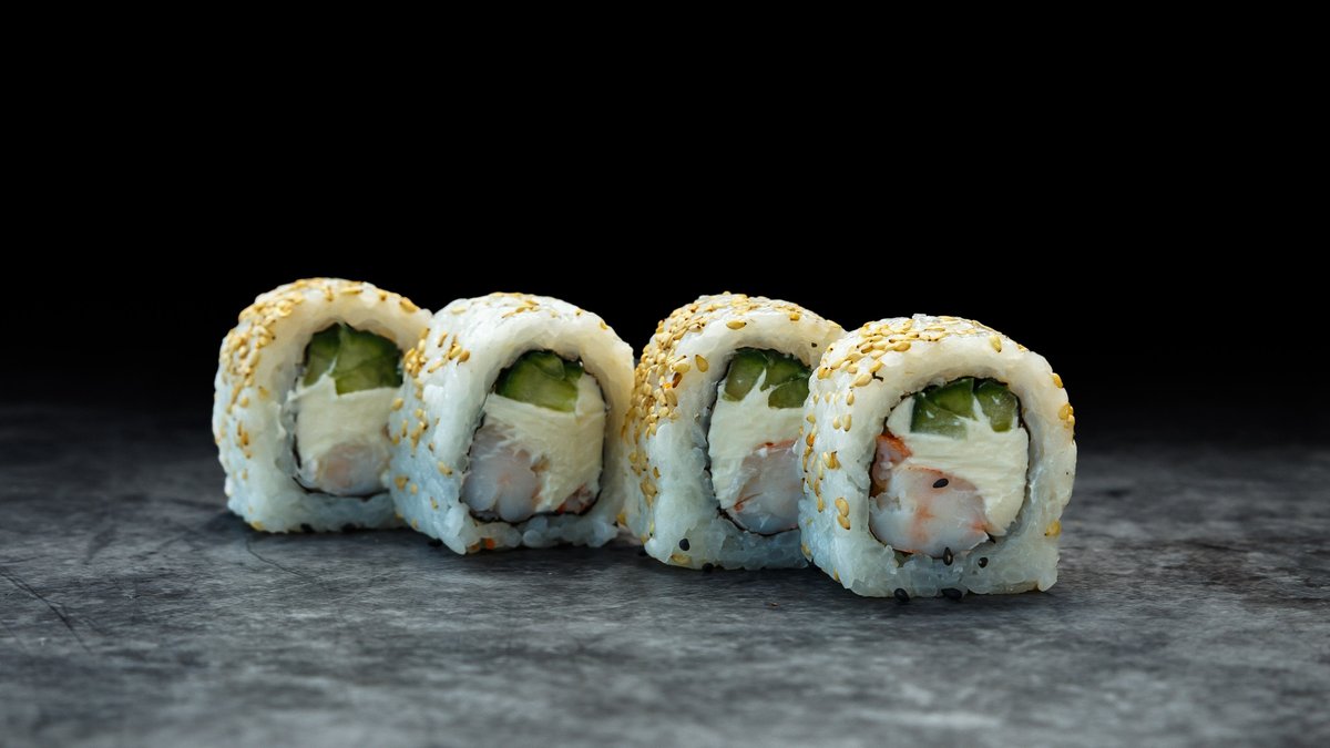 kreemjuust, hiidkrevett, avokaado, masago, unagi kaste, seesam