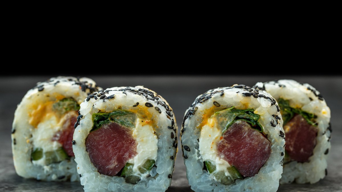 kreemjuust, avokaado, tuunikala, unagi kaste, seesamiseemned
